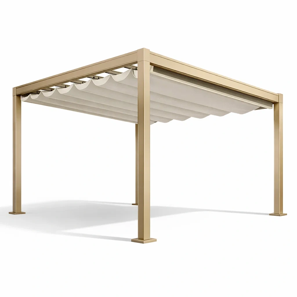 Pergolato da giardino in alluminio con tetto retrattile in poliestere